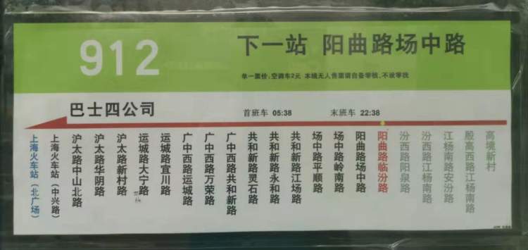 (划重点:调整后,912路不直达上海火车站,需换乘或轨道交通一号线)