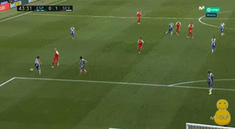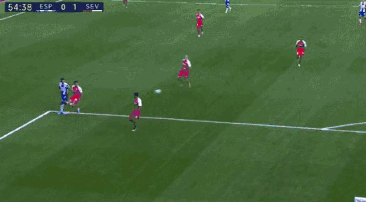 第44分钟,纳瓦斯底线传中,吕客·德容前点门前甩头攻门被迭戈·洛佩斯下意识挡出,后卫解围后皮球击中横梁弹下,雷吉隆补射破门,0-1,塞维利亚取得领先。