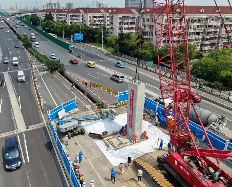 今天上午,随着一根高逾9米,重达81吨的预制立柱平稳吊装到位,济阳路(卢浦大桥-闵行区界)快速化改建工程2标正式开启主线高架预制构件安装施工。隧道股份路桥集团建设者表示,随着主线高架架设的启动,工程建设将进入“快车道”,预计于今年年底前可完成全部主线立柱吊装作业,2020年实现桥梁结构贯通。