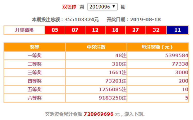 8月18日晚,中国福利彩票双色球游戏进行第2019096期开奖。当期双色球红球号码为05、07、12、18、27、32,蓝球号码为11。