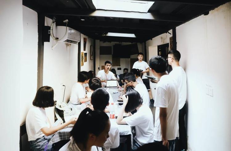 17日晚接近凌晨,学生们仍挤在青旅的会议室中,讨论创业方案,在白纸上修改小组的商业计划。