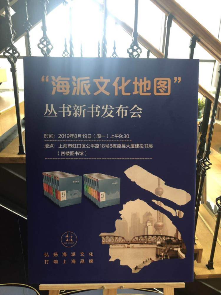 “海派文化地图”丛书于2016年9月启动编写,并于2017年上海书展首展4卷本(黄浦卷《申江往事》、杨浦卷《沪东风云》、浦东卷《都市传奇》、崇明卷《东海瀛洲》);2018年上海书展展出5卷本(静安卷《上海蓝调》、青浦卷《崧泽之光》、金山卷《山海雅韵》、徐汇卷《海上文脉》、宝山卷《淞滨漫话》)。
