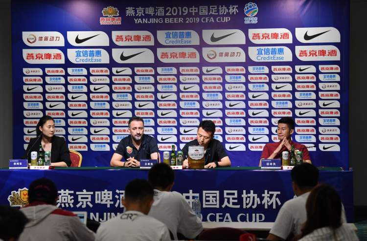 周一下午,上海上港主帅佩雷拉带着球员于海来到上海体育场,出席了球队主场和山东鲁能足协杯半决赛的赛前新闻发布会。