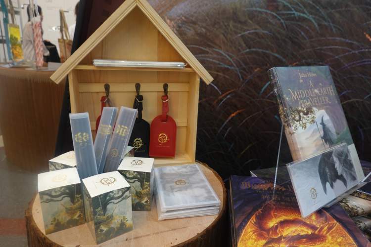 今年书展,世纪文景的主推图书是“指环王概念师”约翰·豪的画册,还推出了一系列精美的衍生品。在书展现场,购书即可抽约翰·豪的艺术衍生品,一等奖是艺术插花长柄伞,二等奖是艺术插画便签砖,三等奖是艺术插花铅笔。