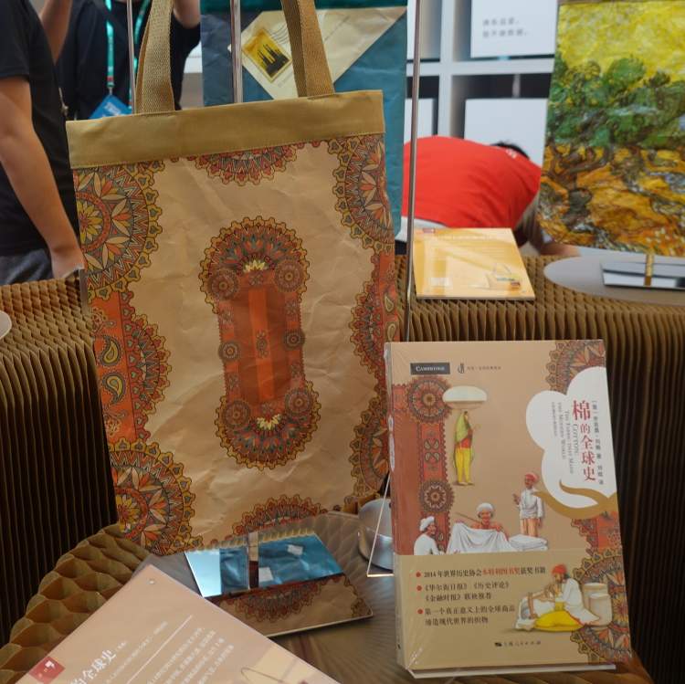 比如说这款使用《棉的全球史》封面设计的包包,图案来自于当时棉的“全球体系”核心的印度棉制品的印花,富有异域气息。包的正面为古典的对称,反面为现代的不对称,有一种不敷衍的设计感在里面。