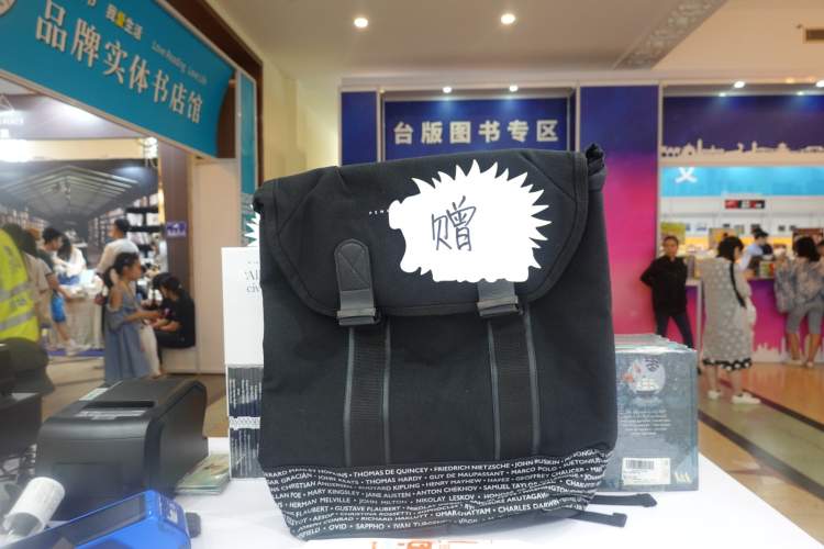上海译文出版社是最早开始做文创的出版社之一,不过在书展上带来的不多。你可以参加他家的“买图书送文创”活动,购买《聊天记录》《猫头鹰在黄昏齐飞》《桑贝在纽约》等12本图书,赠送铅笔、明信片、胸针、胶带等图书相关周边。