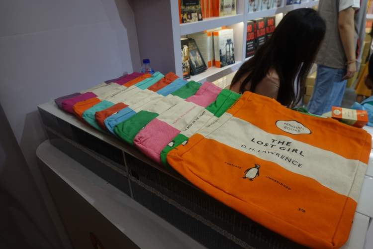 相比往年的独自绽放,今年的企鹅兰登在种类纷繁的出版社文创中显得不那么亮眼。这也和它没有带来太多产品有关——只有企鹅经典布袋、企鹅名著布袋、企鹅小黑书包。