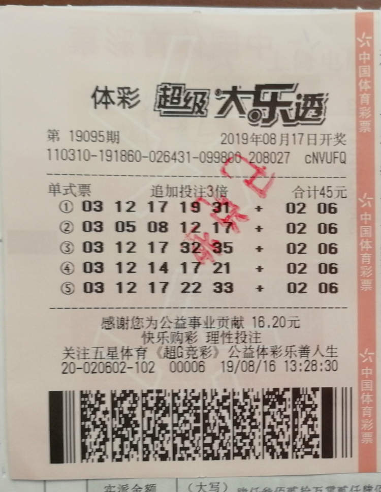 其中,3注1800万元出自一张经3倍投、5注号码、45元投入的单式追加倍投票,单票擒奖5400万元;2注1000万元分落两张彩票上,中奖彩票各为一张1注号码、2元投入的单式票。