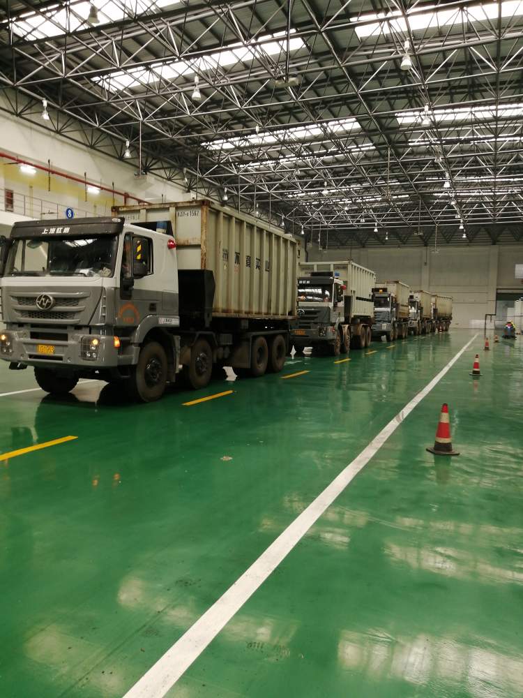 昨天早上8点18分,一辆集卡运输车驶入城投集团上海老港再生能源利用中心二期南区卸料大厅,将第一箱装满已分类的干垃圾从1号码头装车,运输至南区卸料大厅。