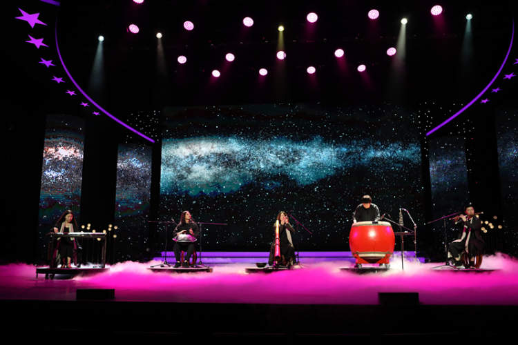 “国际范儿十足”的《和•鸣》惊艳群星奖舞台,打破了一直以来鲜有器乐类作品登上群星奖的“惯例”。《和•鸣》选用中国古琴、竹笛、大鼓等乐器和来自澳洲、瑞士、非洲等地的乐器合奏,演绎出和谐动听的旋律,让不同国度和民族的多元文化碰撞共振,呈现出“美美与共、天下大同”的中国精神。