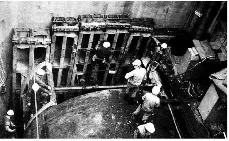 1962年,浦东塘桥基地,隧道人采用网格挤压盾构机建造我国第一条隧道工程试验段,隧道人的梦想从这里起航
