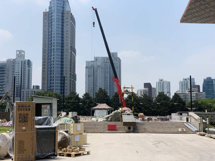 采访时正值中午,施工人员都在树荫下休憩。周到君询问其中一位师傅后获悉,整体工程在国庆前将修缮完毕,正式对外开放。目前,改造工程的结构封顶工作已经完结。