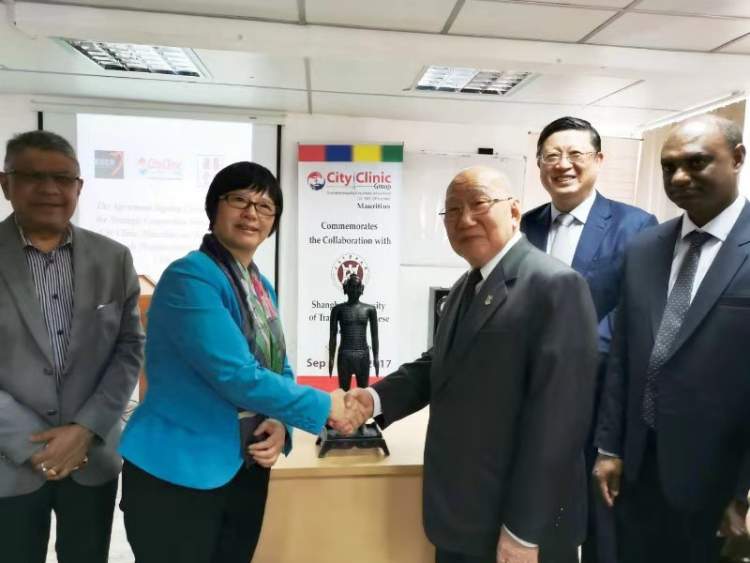 今年6月,上海岳阳医院院长周嘉与毛里求斯城市医疗集团主席Patrick Chui Wan Cheong代表双方签署了战略合作协议。