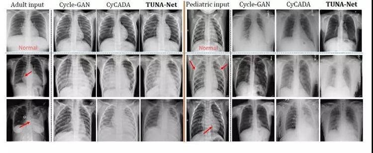 研发出的无监督方式下的TUNA-NET,在儿童肺炎X光片的识别的任务上获得了AUROC=0.963的结果,已经非常接近于有监督学习的结果(AUROC=0.981)。