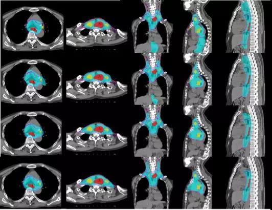 图三 食道癌放疗规划临床靶区规划的效果图