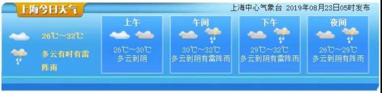 今天上海多云到阴,南部地区有短时阵雨,今天的午后到夜里阴有分散性阵雨或雷雨,局部地区雨量可达中到大雨,明天多云到阴有时有阵雨或雷雨。东北风3-4级。今天最高温度32度,明天最低温度26度。