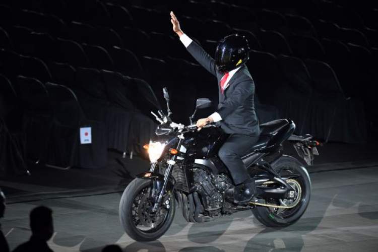 ■ 去年雅加达亚运会开幕式,佐科骑摩托车入场