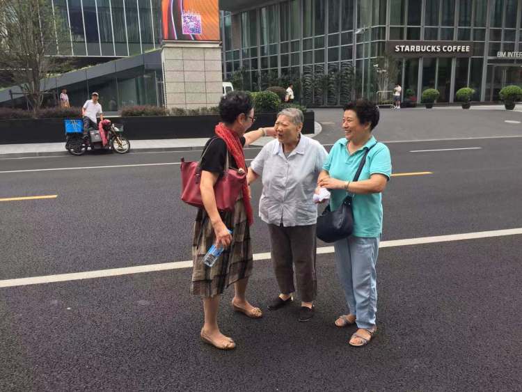 原来,这是天目西路街道牵头举办的“重聚三层楼,留住老回忆”活动。轮椅上的老人都是原来住在三层楼的居民,现在动迁到了不同地方,最年长的91岁,她们在动迁后再没有来到曾经居住的地方看一看,彼此间也几乎没有再见过,除此以外,活动还邀请了几位六七十岁的老邻居,十多人齐聚一堂。