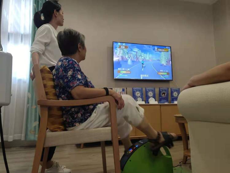 家住附近的顾阿姨介绍说:“通过这个上下肢康复机,我可以在室内进行康复运动,屏幕上还会实时显示出骑行自行车的影响和各项运动数据。”