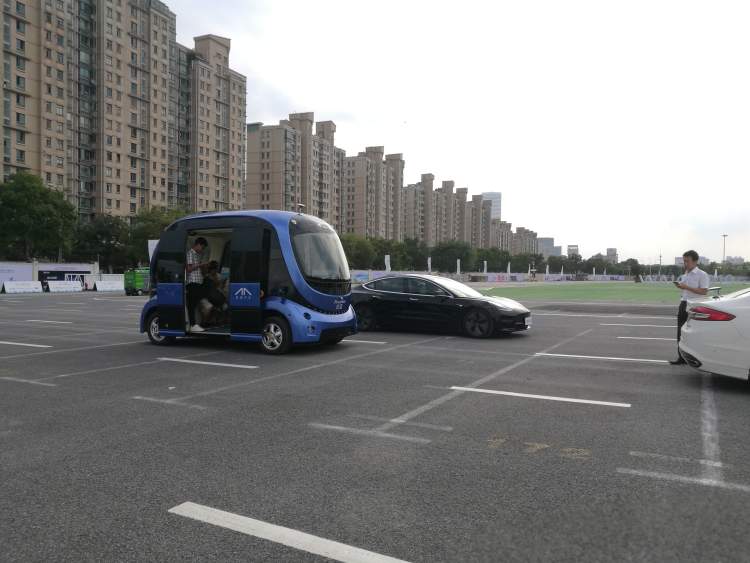 来到位于国展路与周家渡路交叉口西南角,毗邻世博展览馆的AI赛道。在这里,不少品牌的无人驾驶汽车已经“整装待发”。在现场工作人员的指引下,记者坐上了威马汽车的一辆无人驾驶SUV。