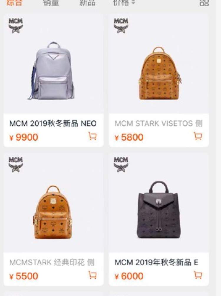 MCM的棕色印花双肩包,4399.9人民币。周到君在天猫旗舰店查到的类似的款式,售价在5500以上——