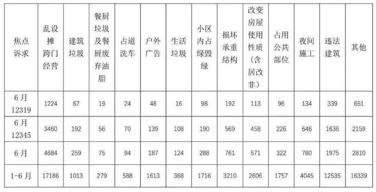 其中,违法建筑虽然每年都投诉较多,但诉求量逐年下降,2018年同比降低6.6%,今年上半年再降18.6%。而对物业管理的诉求量却逐年猛增。2017年同比上升195%,2018年同比增长111.6%,今年上半年又同比上升45%,成为投诉新热点,尤其是损坏侵占公用设施、结构改建、居改非等,市民反映最为强烈。