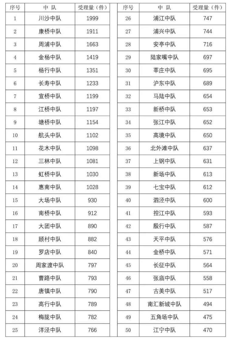 今年1-6月,受理投诉较多中队的包括城管川沙中队、康桥中队、周浦中队、金杨中队、杨行中队、长寿中队、宣桥中队、江桥中队、塘桥中队和航头中队。