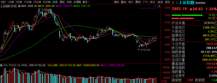 最近大A给人最大印象是韧性有所增强,面对外盘的数次暴跌,我自岿然不动,这是难能可贵的,说明大A确实来到了估值洼地,大资金只会利用每一次外界利空因素清理浮筹。我近期一直强调大盘在2750点至2850点做箱体运行,今天大盘冲过了2900点,显然到了笔者所说箱体的上轨顶部,在这个位置,对手里冲得较急的品种可以逢高减磅。短期内,一些外部因素的变化具有较大的不确定性,这是笔者对大盘指数看得较保守的原因,但对局部热点,笔者一直是比较乐观的。上周五我们在另一个专栏”操盘工作室“里已经将仓位由20%提升至50%,而且主要增仓了医药股和国资改革股,从本周两个交易日看,这两个板块走势十分强势,今天又有十几只医药股涨停。所以现阶段,投资者可以轻指数,多挖掘个股机会,但是在操作上,还是要以波段为主,当股指触碰到箱体上轨时,就要防止冲高回落的可能。