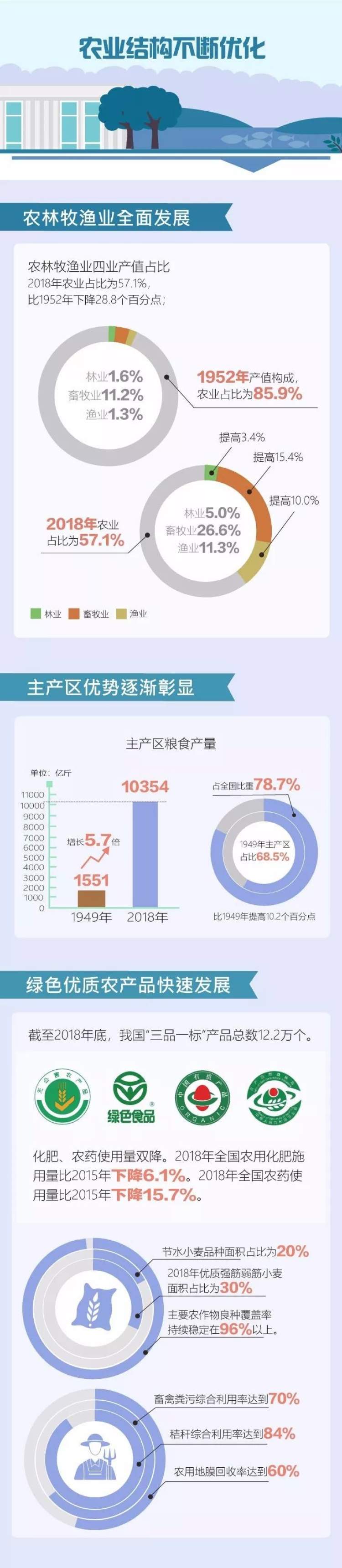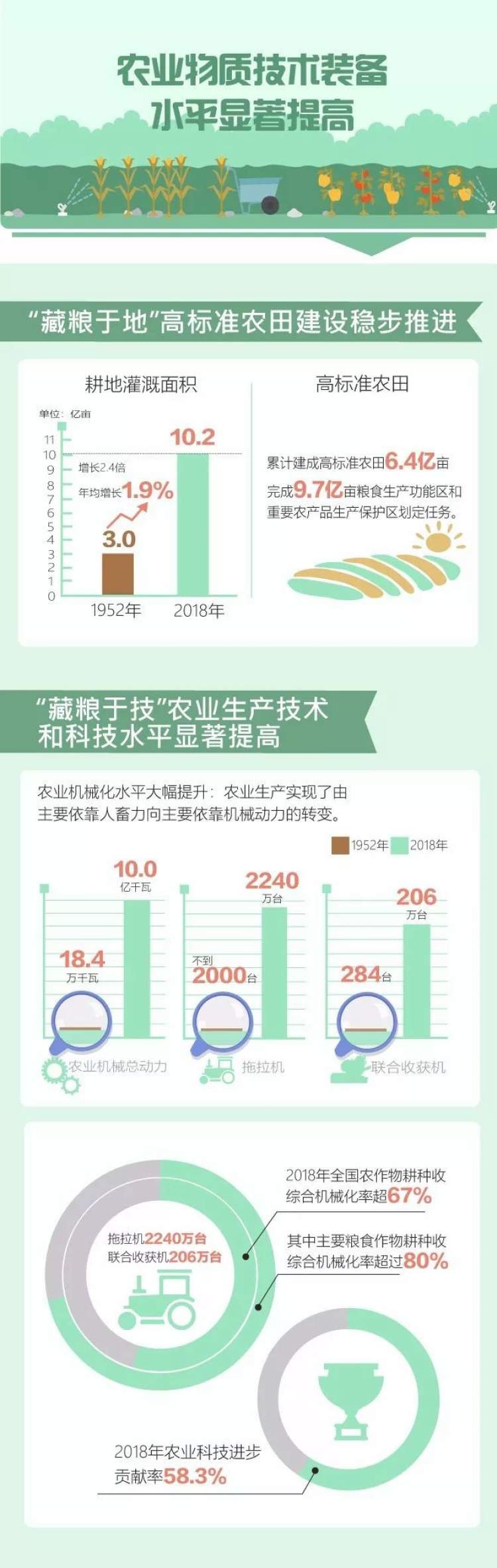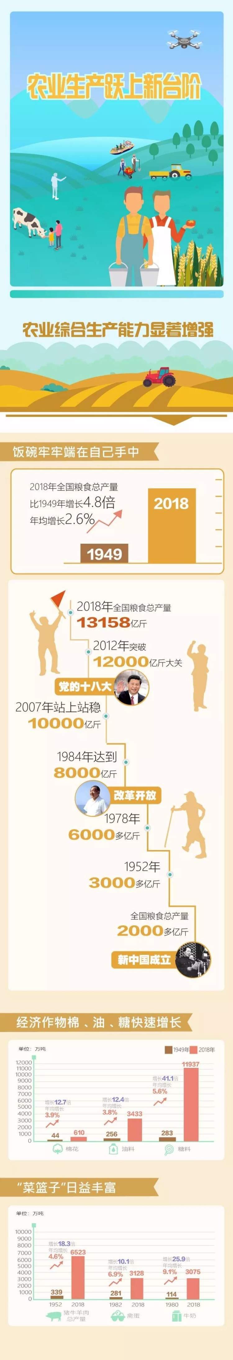 【图解】饭碗如何越端越牢?一组数据见证农业70年改变… 2019-8-27 来源:统计微讯 民以食为天。 吃对中国人来说,是刻在骨子里的五千年的情结。从「吃不饱」到「变着花样吃」,中国仅用了70年。 新中国成立70年来,中国用不到世界9%的耕地,养活了世界近20%人口。 一张图带你看懂,我们的饭碗如何越端越牢? 赞一个 (0)