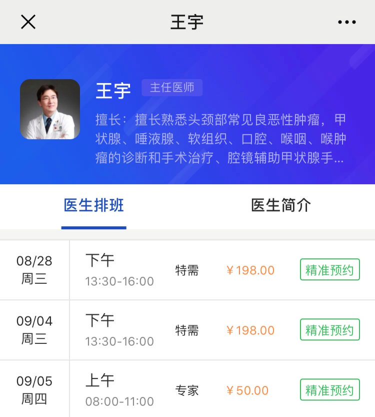 再点击头颈外科专家号,“预约”二字变成了“精准预约”。