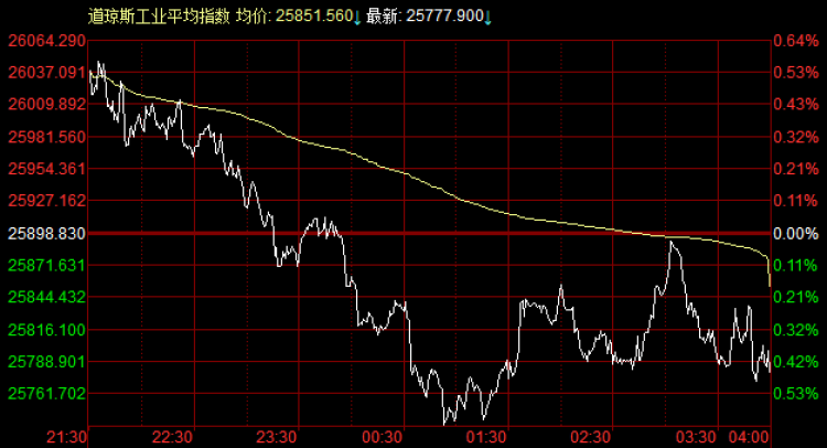 来看隔夜美股的具体数据。至收盘,道琼斯工业平均指数下跌120.93点,跌幅0.47%,收报25778点;纳斯达克综合指数下跌26.79点,跌幅0.34%,收报7827点;标普500指数下跌9.22点,跌幅0.32%,收报2869点。