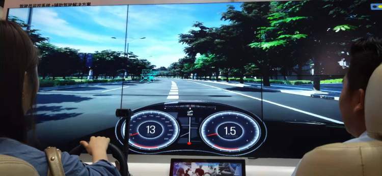 在商汤展位,一款模拟游戏展示了驾驶员监控系统和辅助驾驶解决方案。