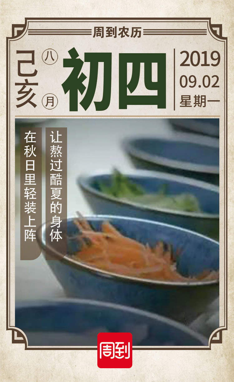 农历中国 | 八月初四 · 宜轻食 额是狼 2019-9-02 来源:周到上海 让熬过酷夏的身体 在秋日里轻装上阵 处暑时节, 夏秋交替, 此时阳气渐收,阴气渐长, 白天依旧炎热,而夜渐凉, 昼夜温差大, 稍不注意就很容易生病。 身体各方面的机能为适应季节的变化 也处于调节过渡期, 此时,我们的饮食也宜以 轻食为主。 轻食, 主要是指清淡、低热量、 不增加身体负担的食物。 高纤维的粗粮、蒸煮的肉类 以及新鲜的蔬菜水果, 巧妙地搭配在一起, 均衡的膳食营养, 即简单自然,又能勾起食欲, 让身体轻松地适应季节的变化。 来源:周到上海 作者:额是狼 赞一个 (0)