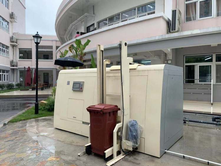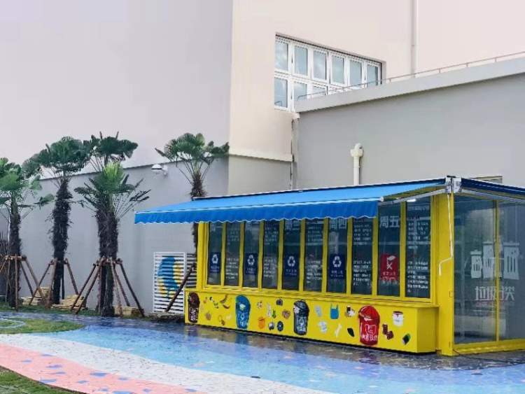 在学校东北角,安装了一套湿垃圾处理设备系统。主要分为生化处理系统、水处理系统以及科普多功能厅三大空间,展示了从湿垃圾分类、集中处理、到资源化利用的全过程和完整的闭环系统。