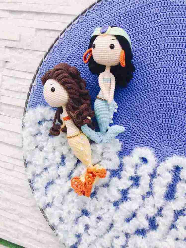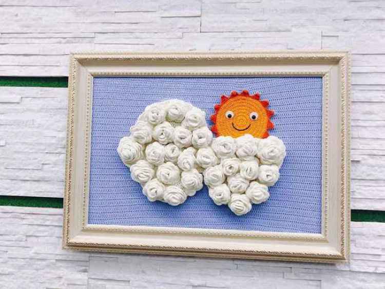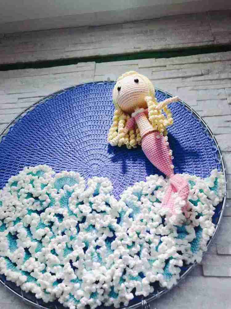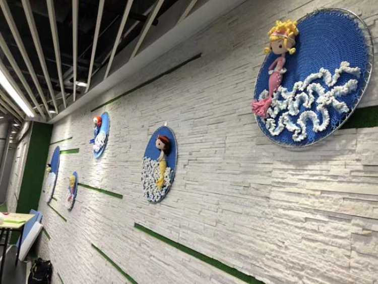 再拿海洋主题下的海浪来说,不同的场景下,配合不同颜色的美人鱼,她也用到了不同材质的毛线,以营造出不同状态下海浪翻滚的样子。