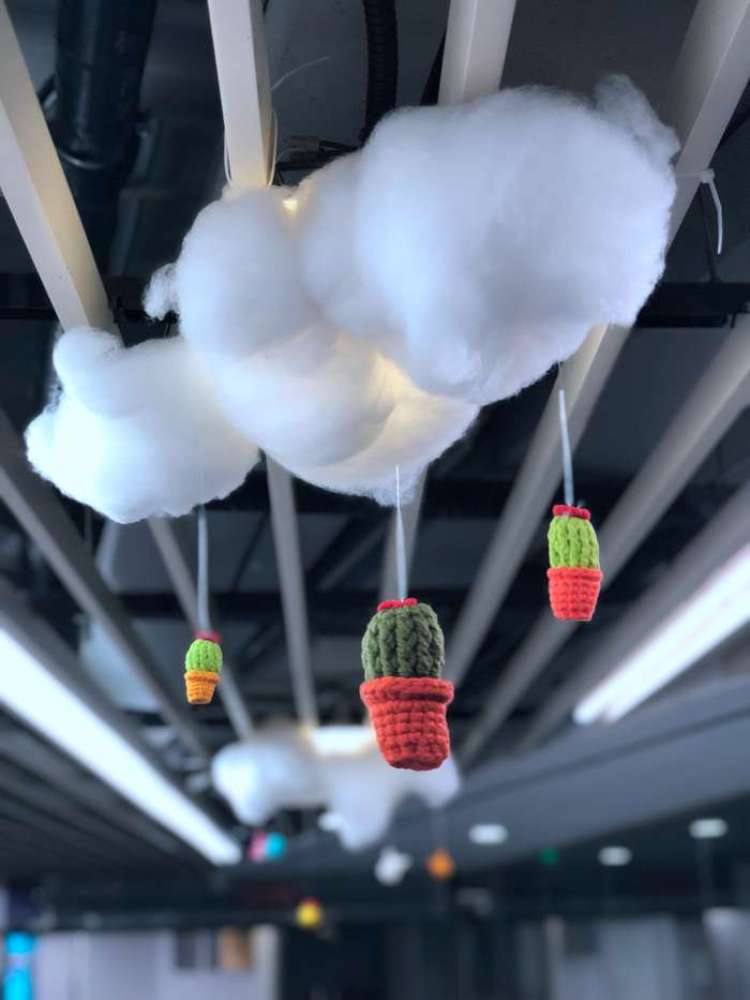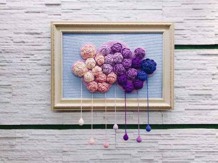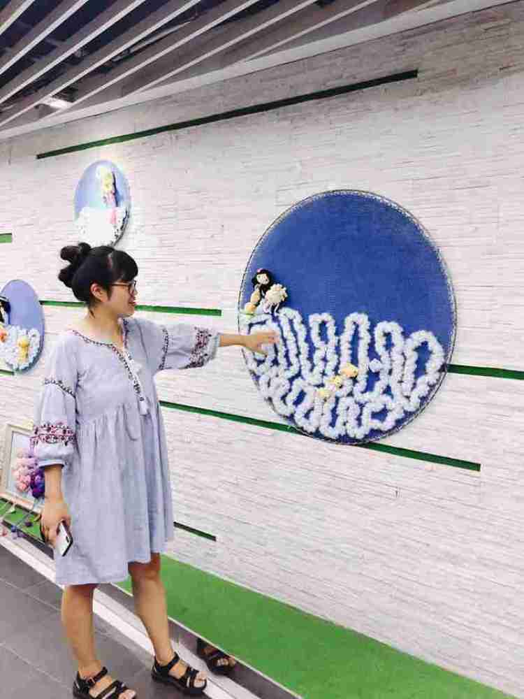 天空、陆地与海洋,是此次毛晚为编织展精心设计的主题,漫步其间,你能感受到她的用心。美人鱼与珍珠,仙人掌与花朵,云彩与彩虹……每一样作品都是用毛线编织而成。