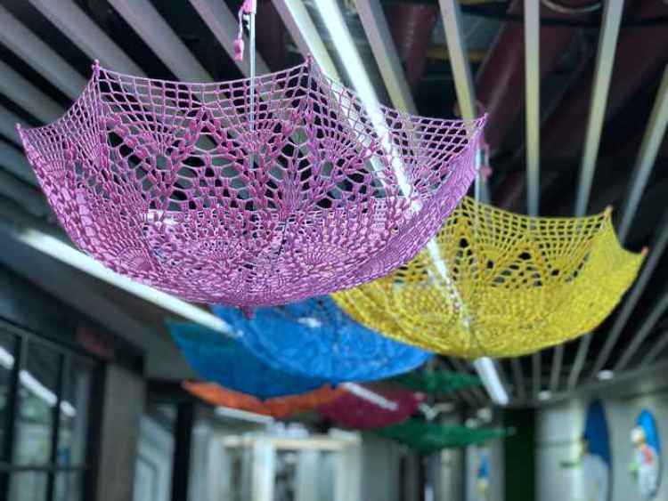 除了地下层的主题性展览,和去年一样,毛晚也会为栏杆编织一番,不过考虑到季节与毛线破损关系,可能会等天气凉一点再进行安装。