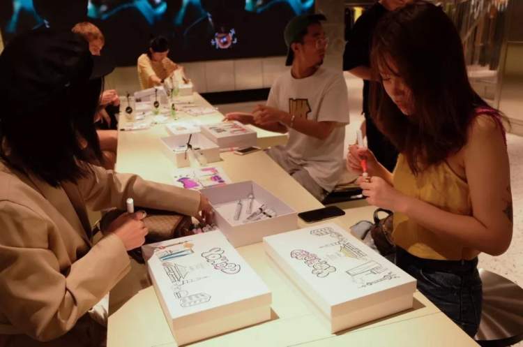 现场策划了鲜肉月饼礼盒的DIY课程,吸引了不少美食爱好者的热情参与。创意与个性混合、传统与新潮碰撞,参与者们在热爱中国传统文化艺术家Jon Burgerman的指导下唤醒了心中的爱与儿时的记忆,完成了专属自己的鲜肉月饼礼盒设计。