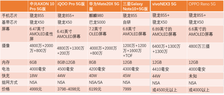 在首批发售的5G手机中,手机厂商们可谓卯足了全力。目前发布的5G手机涵盖了唯一双模(SA/NSA)5G手机,最具性价比的5G手机,以及拍摄能力最强的5G手机。