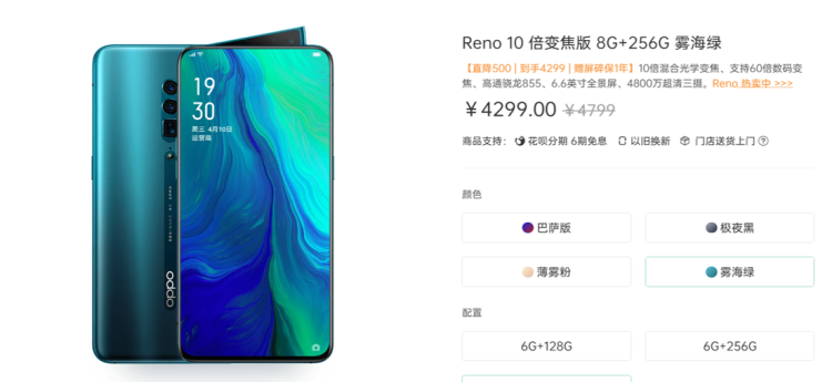 据悉,将发布的OPPO Reno 5G版搭载骁龙855+芯片,顶配12GB内存,后置4800万像素主摄的三摄,支持10倍混合变焦。