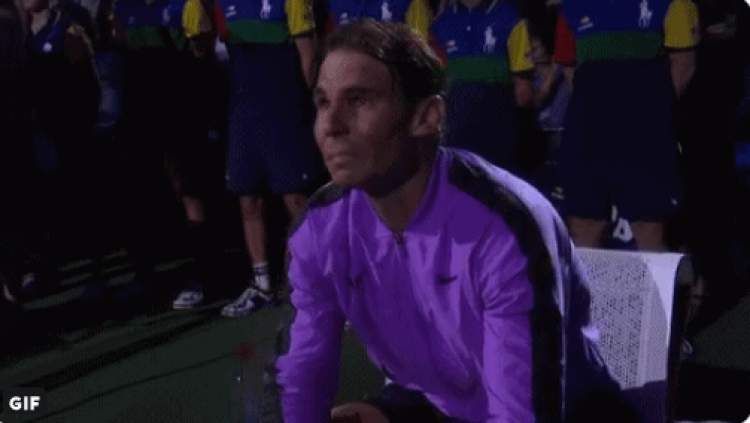 老实告诉你,写上面这段话的时间是北京时间清晨6点40分。当时纳达尔盘分2:0领先,在第三盘率先破发。看台上的罗德·拉沃尔老先生已经准备好要颁奖,安娜·温图尔、拉尔夫·劳伦等时尚大咖,还有一长串的明星网红以及全场25000名观众,也等着起立鼓掌,见证纳达尔19个冠军。但是……