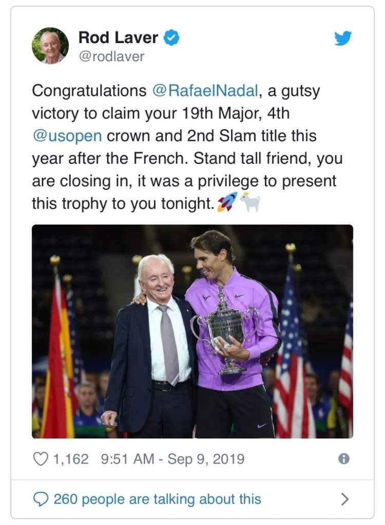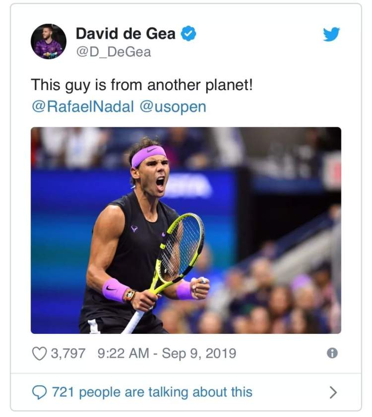 在纳达尔夺冠后,全世界也纷纷发来贺电,包括网坛名宿罗德·拉沃尔,同行德尔波特罗以及曼联门将德赫亚等人都向纳达尔表示恭喜。