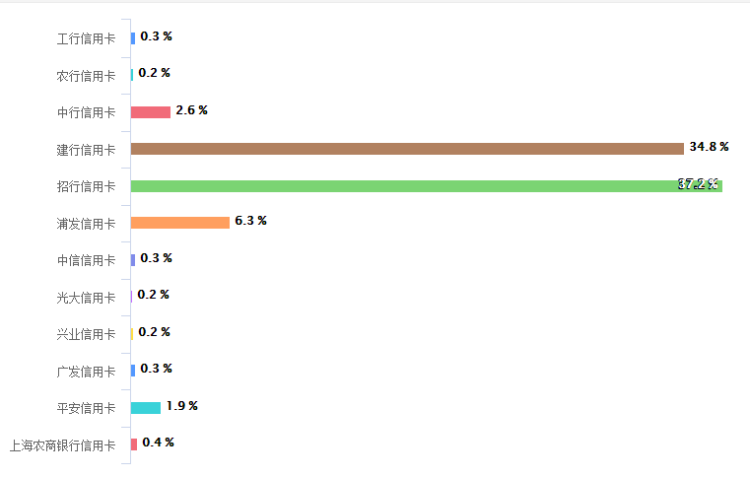 同为第一梯队的建行信用卡交易额为1.5万亿,排名第三,但信用卡透支余额建行稳坐头把交椅,尽显大行风范。