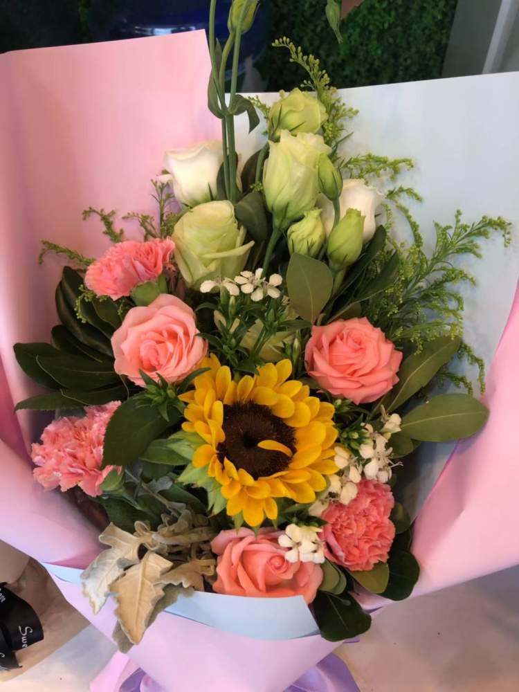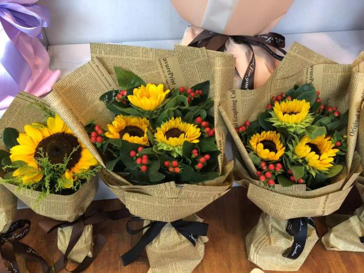 在千卉花艺店里,周到君看到,教师节花束多选用康乃馨、玫瑰、向日葵三种花为主花,搭配相思豆、满天星等,多数是小型花束,以1-4支花居多,稍大一些的花束也不会超过10支花,价格多数在15-40元之间,稍贵一点的在80-120元左右。