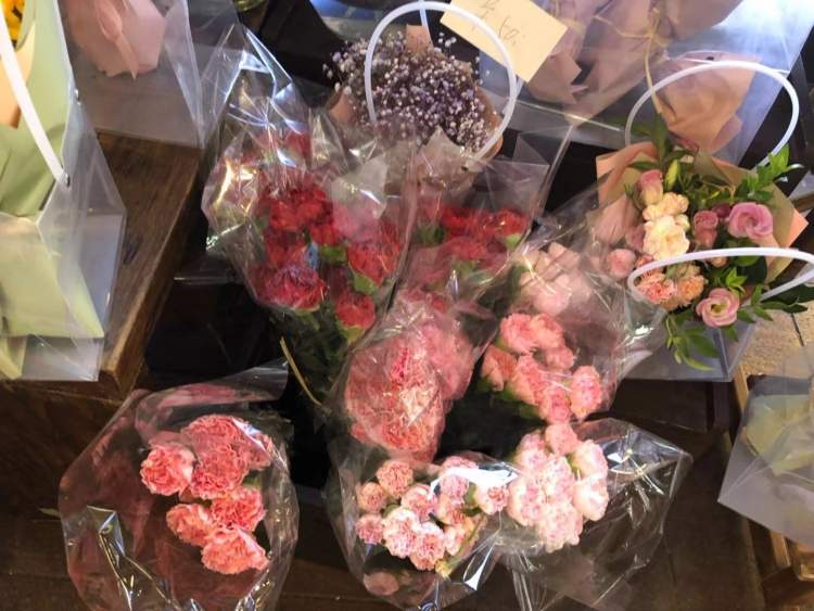 ■南京西路地铁站一出口的花店里摆放的康乃馨。