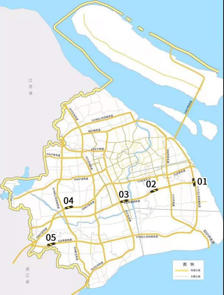 01:2019年8月15日至9月30日,G1503东南环内、外圈转S32浦东机场方向匝道施工封闭。