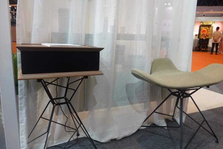 首次参展的聿匠设计带来了一款为租房一族设计的“灶台”B-Mine。如果你吃够了外卖,也不想用公用厨房,这张桌子配有餐具架和电磁炉,让你可以在自己的小房间里,轻松地创作出“烟火气”。