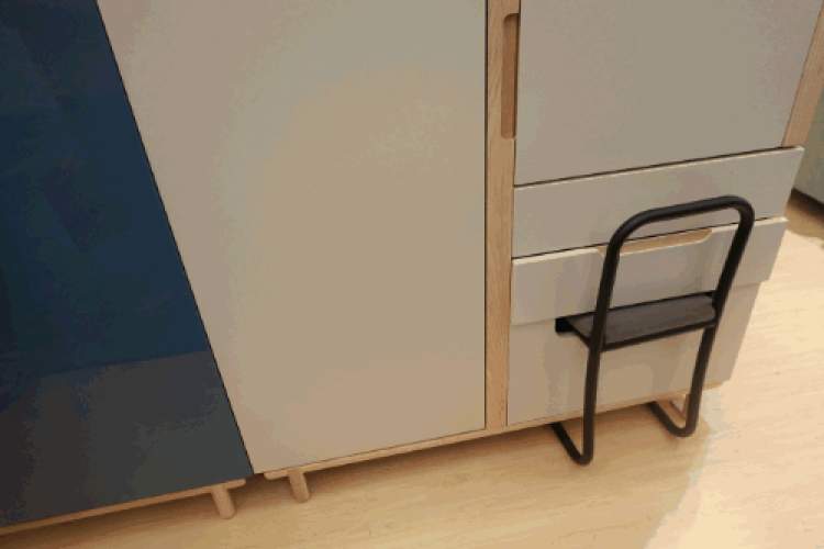 这可能是周到君看到最迷你的转角柜了。设计师介绍自己的设计理念:“现在大家都住得寸土寸金,角角落落都要利用。”