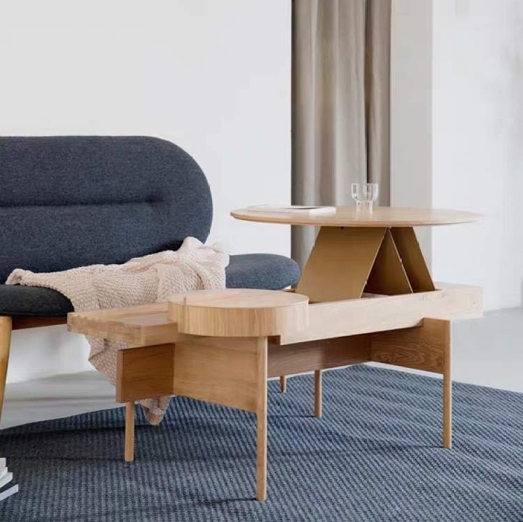不过,舒展茶几看起来和同类都不太一样——不规则的形状有趣中带着优雅;升降机械采用了横向结构,从而缩小了占用的内部空间,让升降茶几不必是大家伙。
