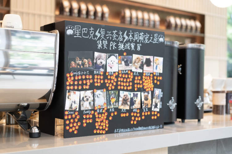 作为一家宠物友好店,星巴克上海复兴荟社区体验店经常会举办各类宠物相关活动,其中最受欢迎的就是“每周萌宠之星”的集赞活动,所有来店就餐的顾客都可以使用贴纸为自己喜欢的萌宠投票,获得冠军的宠物还会得到门店特别定制的纪念品。